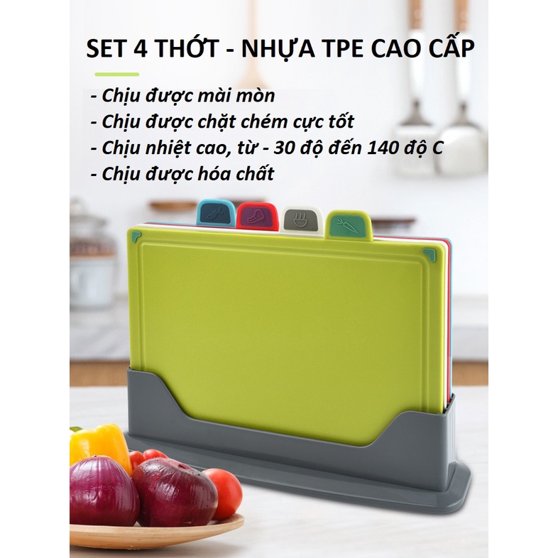 Bộ Thớt 4 Món Phân Loại Thịt Cá Rau Củ Quả, Từ Nhựa TPE Chất Liệu Cao Cấp, Chống Mài Mòn, An Toàn Với Sức Khỏe