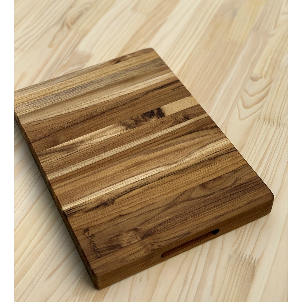 - Thớt gỗ Teak có kiểu dáng và màu gỗ đặc trưng, mang lại sự sang trọng, hiện đại cho căn bếp.