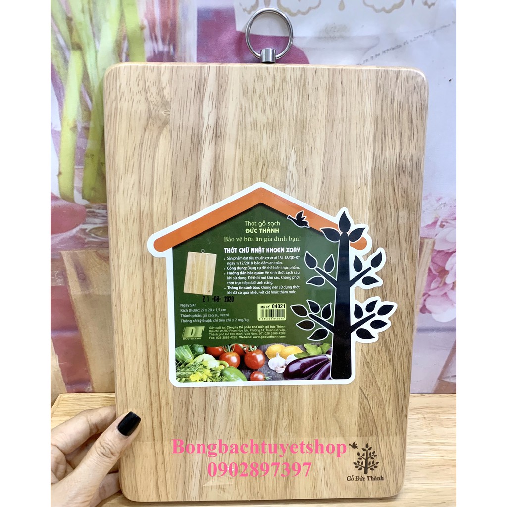 Thớt gỗ Đức Thành 04021 có KHOEN XOAY - Thớt chữ nhật có Khoen Xoay Đức Thành 04021- Kích thước: 29 x 20 x 1,5 cm