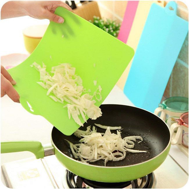 ✔ Thớt có thể uốn dẻo nên rất tiện lợi khi cho thực phẩm vào bát, nồi... khi thái xong.
