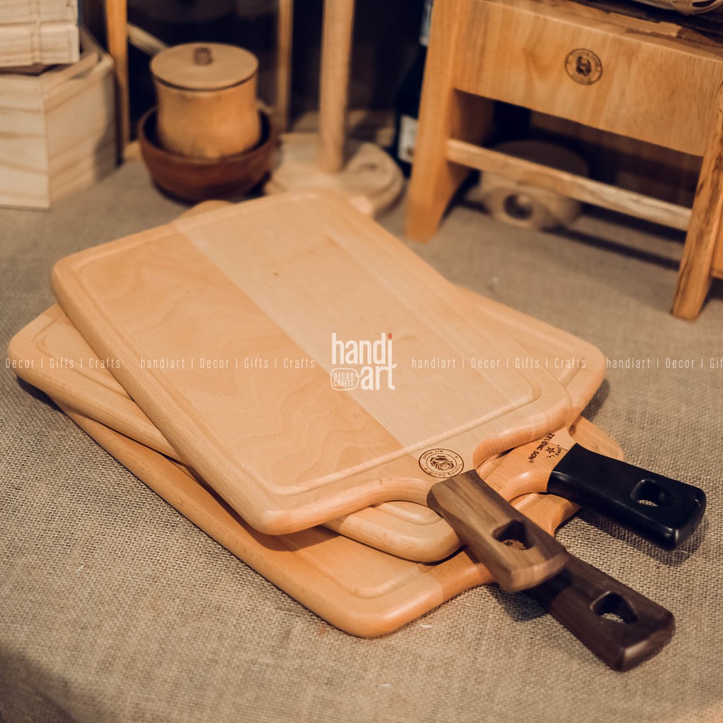 Thớt gỗ beech tay cầm hình chữ nhật( cán thớt gỗ óc chó)- Thớt được làm từ gỗ beech cán thớt gỗ óc chó đã qua xử lý loại bỏ các tạp chất, chống mối, mọt.