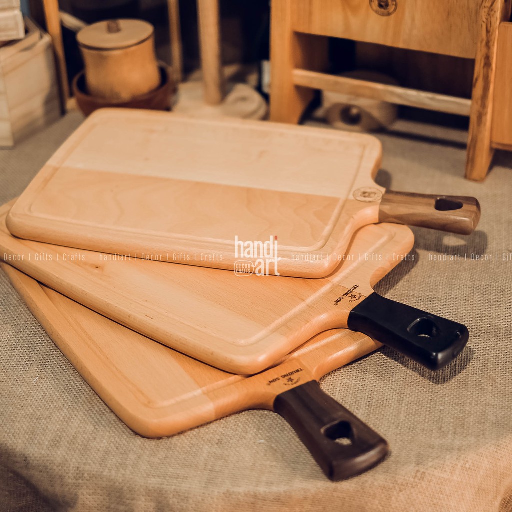 Nhà cửa & Đời sống > Dụng cụ nhà bếp > Thớt || Thớt gỗ beech tay cầm gỗ óc chó - Thớt gỗ tay cầm hình chữ nhật - Wooden cutting boardCòn hàng