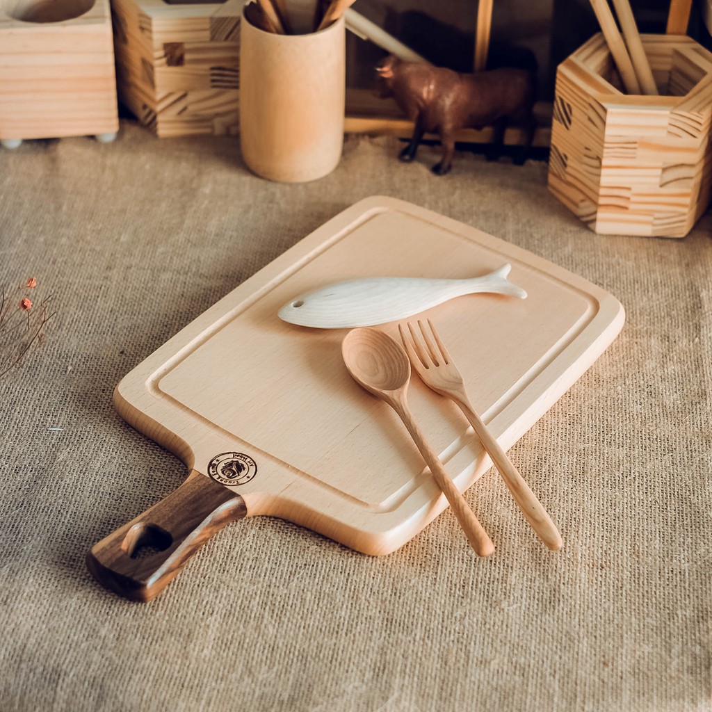 Thớt gỗ beech tay cầm gỗ óc chó - Thớt gỗ tay cầm hình chữ nhật - Wooden cutting board