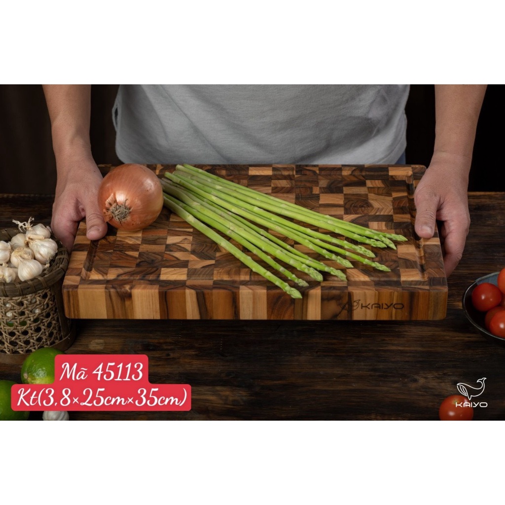 Nhà cửa & Đời sống > Dụng cụ nhà bếp > Thớt || Thớt gỗ cao cấp đầu cây TEAK KAIYO 25cm x 35cm x 3,8cmCòn hàng