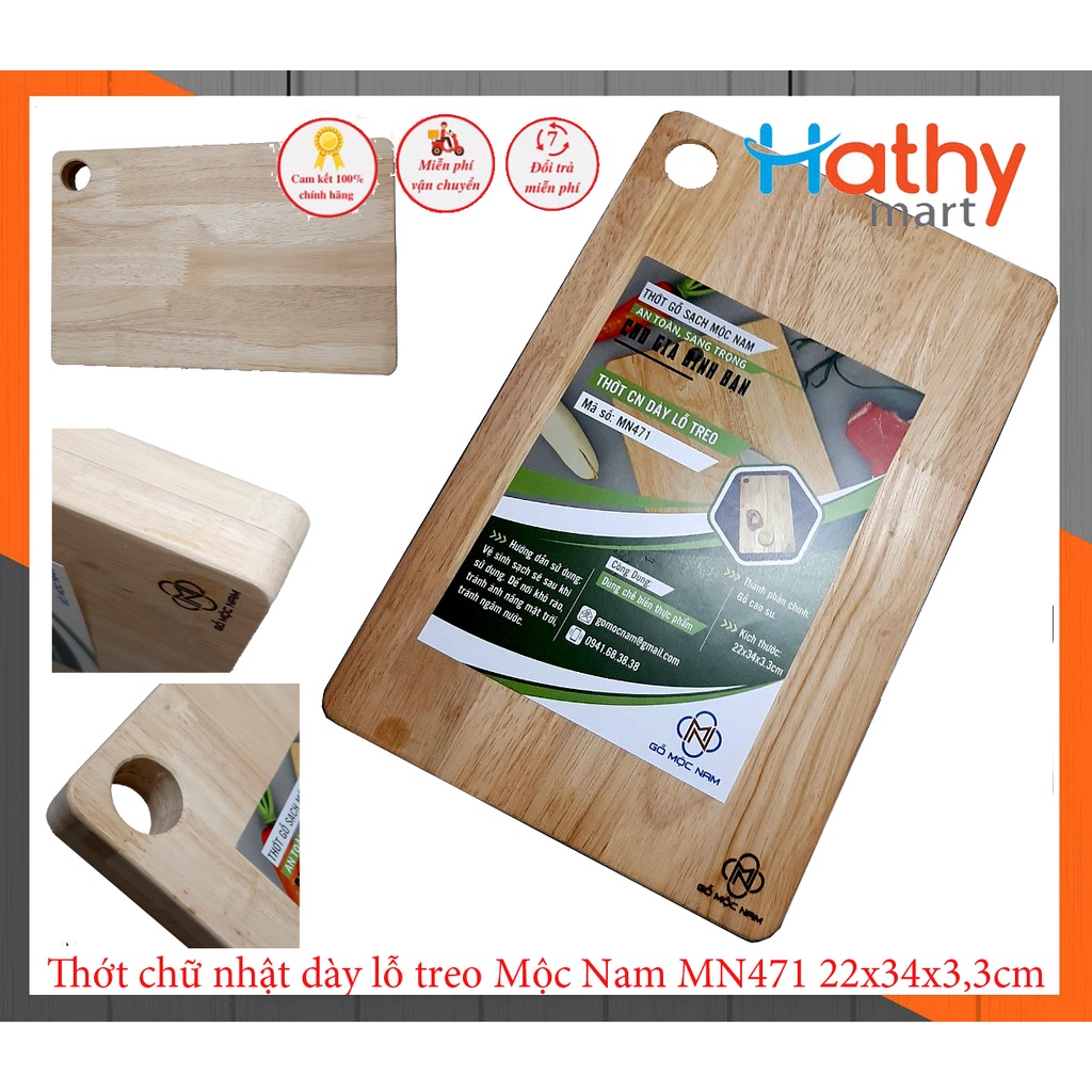 Nhà cửa & Đời sống > Dụng cụ nhà bếp > Thớt || Thớt gỗ cao su chữ nhật [Siêu dày] Mộc Nam MN471 lỗ treo 34*22*3.3cmCòn hàng