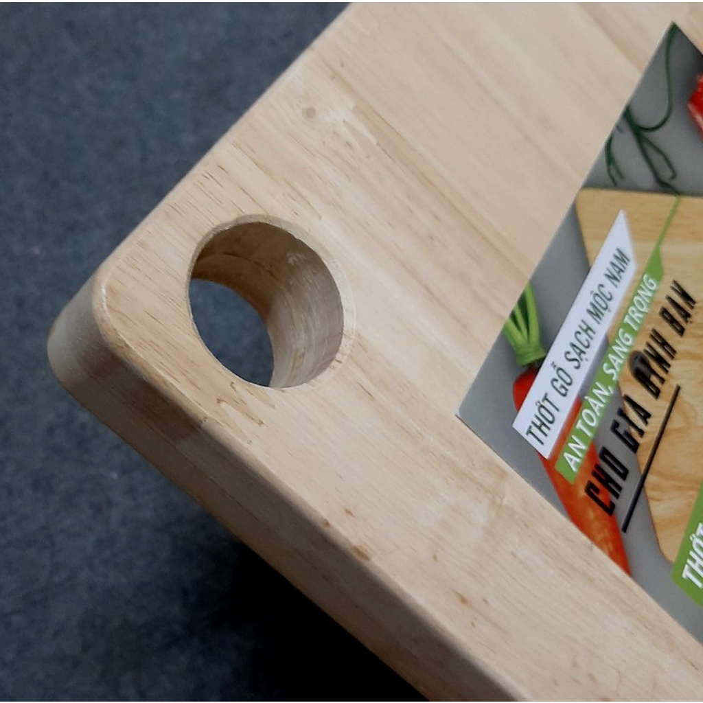 Thớt gỗ cao su chữ nhật [Siêu dày] Mộc Nam MN471 lỗ treo 34*22*3.3cm