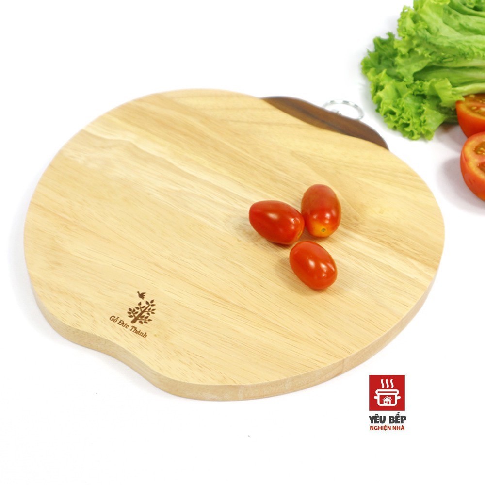 Thớt Gỗ Cao Su Tự Nhiên Đức Thành Hình Cà Chua Có Khoen Treo Xoay -Dụng Cụ Nhà Bếp Tiện Dụng, An Toàn