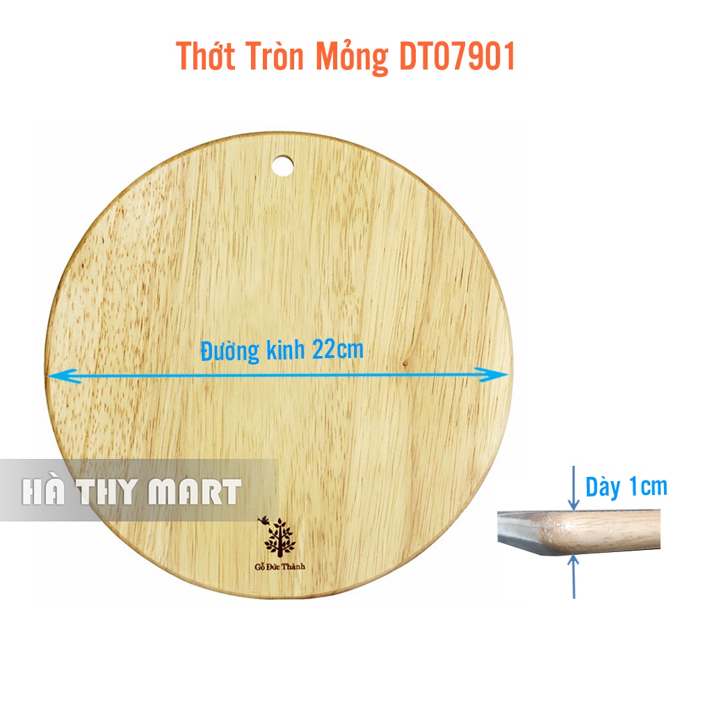 Thớt gỗ cao su tự nhiên tròn mỏng Đức Thành 07901 22cm đẹp