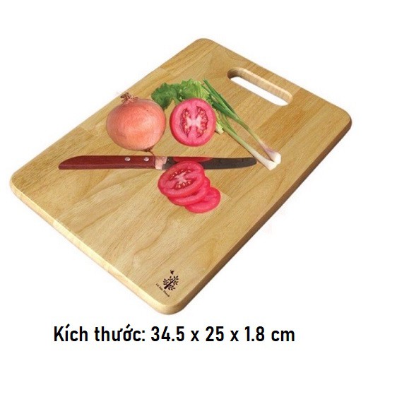 Thớt Gỗ Chữ Nhật Có Tay Cầm An Toàn - Kích Thước - 34.5x25x1.8 cm - Gỗ Đức Thành
