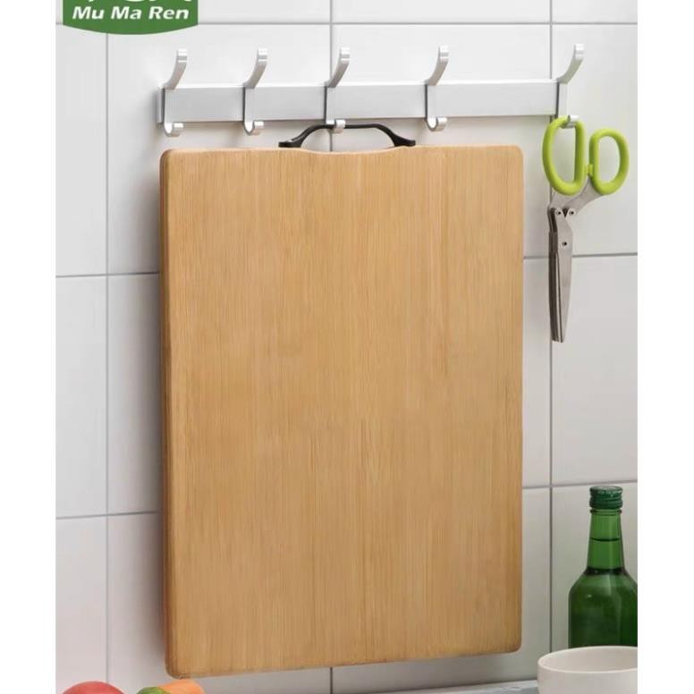 Thớt hình chữ nhật, thích hợp cho công việc nội trợ hàng ngày. Thớt có lỗ tròn để bạn có thể cheo rễ ràng