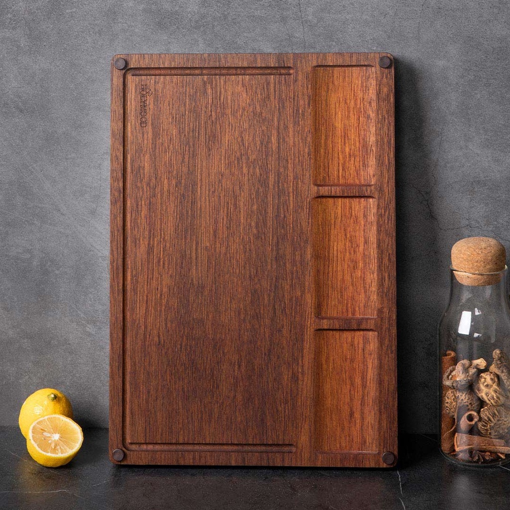 Thớt gỗ HOLYMOOD được làm từ nguyên liệu gỗ đàn hương quý hiếm và bền bỉ. Ngoài ra, chiếc thớt còn nổi bật với kết cấu 3 rãnh phụ giúp cho việc sắp xếp các nguyên liệu được gọn gàng hơn và đặc biệt là thiết kế sử dụng được cả hai mặt cho thực phẩm sống và chín. Chính vì vậy, với những người nội trợ thì đây sẽ là trợ thủ hỗ trợ đắc lực nhất, giúp cho việc nấu nướng được nhanh chóng và linh hoạt hơn.
