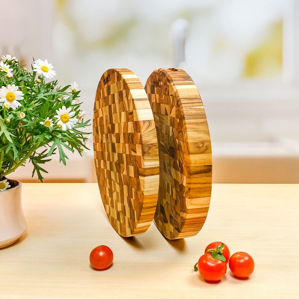 THỚT GỖ ĐẦU CÂY TEAK ME - Thớt Thái/Chặt Tròn Teak Me Đường Kính 30cm