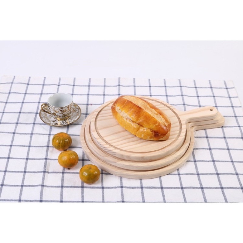 Nhà cửa & Đời sống > Dụng cụ nhà bếp > Thớt || Thớt gỗ decor hình tròn có tay cầm phụ kiện trang trí, chụp ảnh, khay trà bánh, đựng pizza...2 kích thước lựa chọn H26Còn hàng