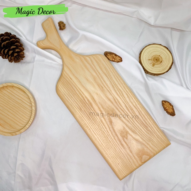 Thớt gỗ decor Magic đựng đồ ăn trang trí tay cầm cành cây sang trọng chất liệu gỗ tần bì tự nhiên cao cấp