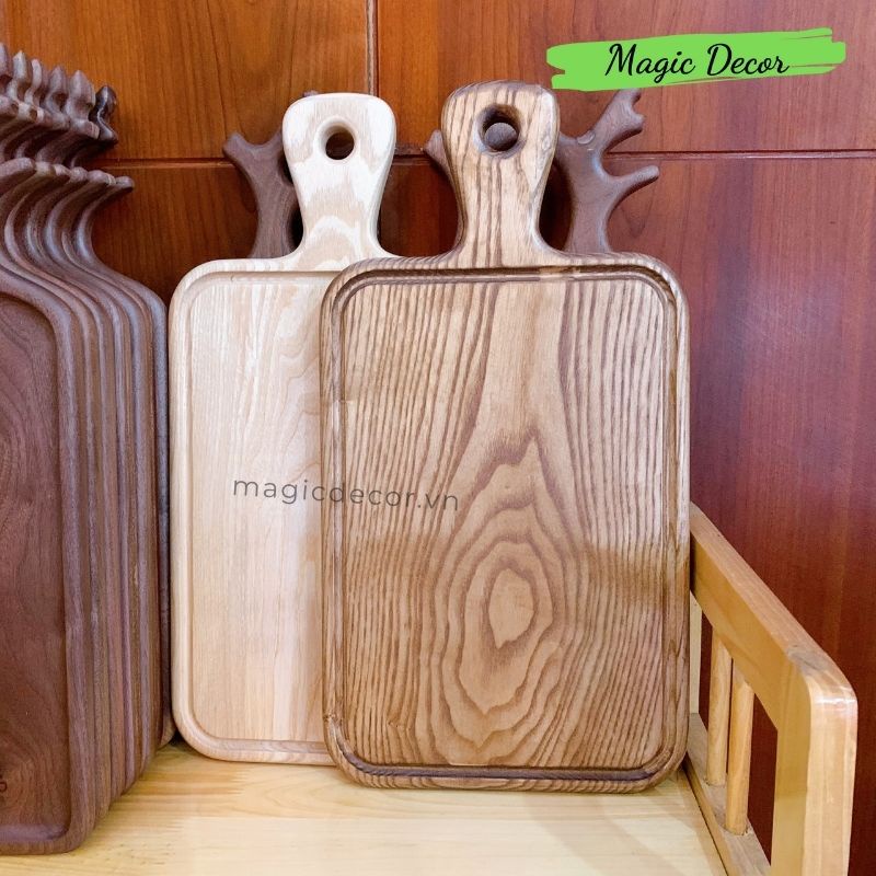 Nhà cửa & Đời sống > Dụng cụ nhà bếp > Thớt || Thớt gỗ decor Magic trang trí hình chữ nhật có tay cầm gỗ tần bì đựng đồ ăn, trái cây sang trọngCòn hàng
