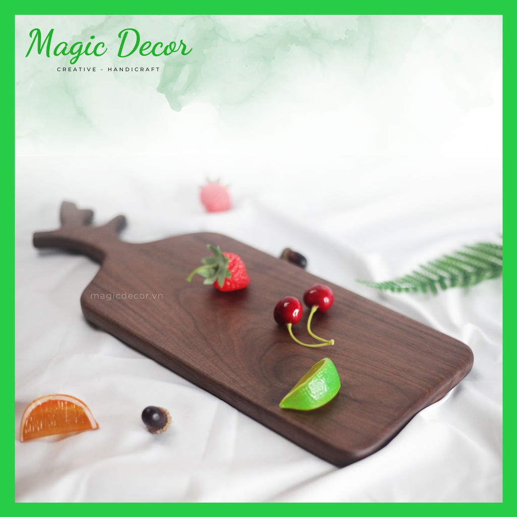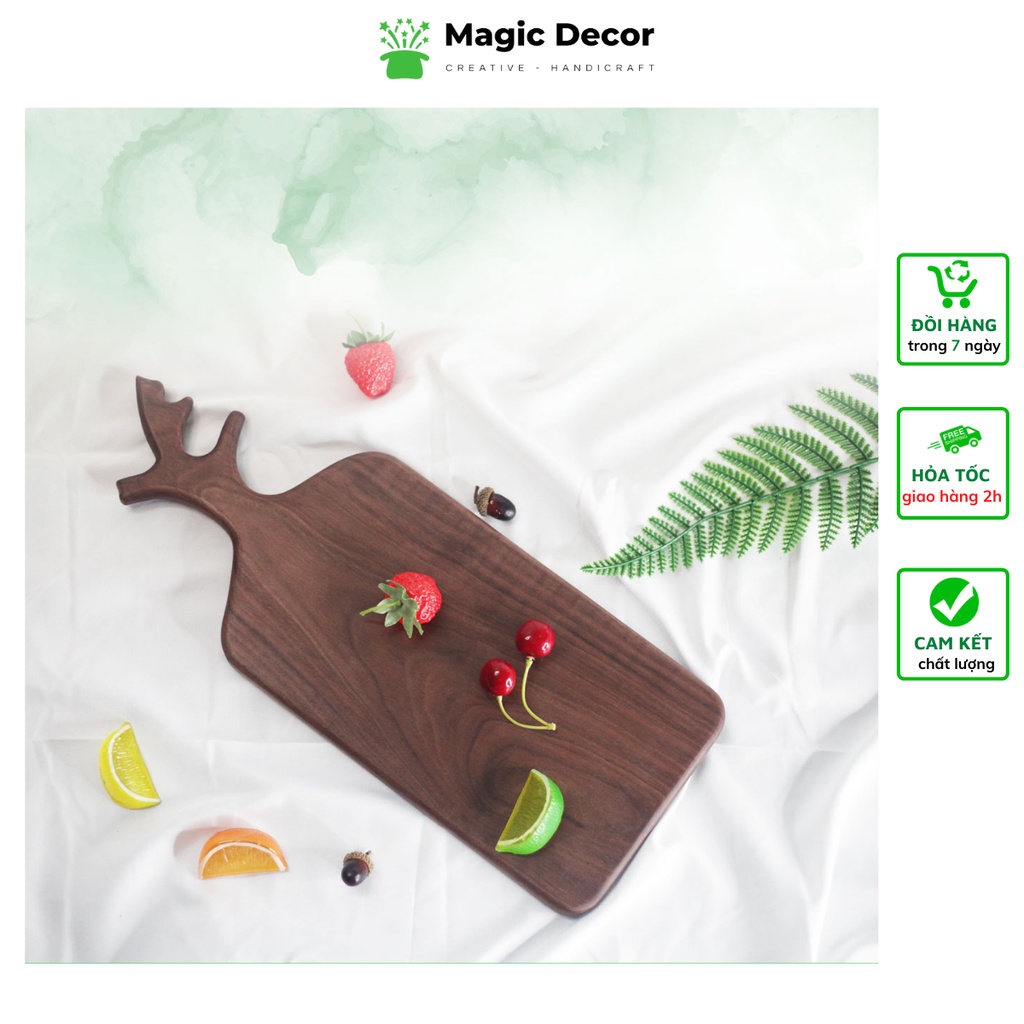 Thớt gỗ decor sừng hươu chất liệu gỗ óc chó cao cấp trang trí đựng đồ ăn cực đẹp kích thước 17x43cm