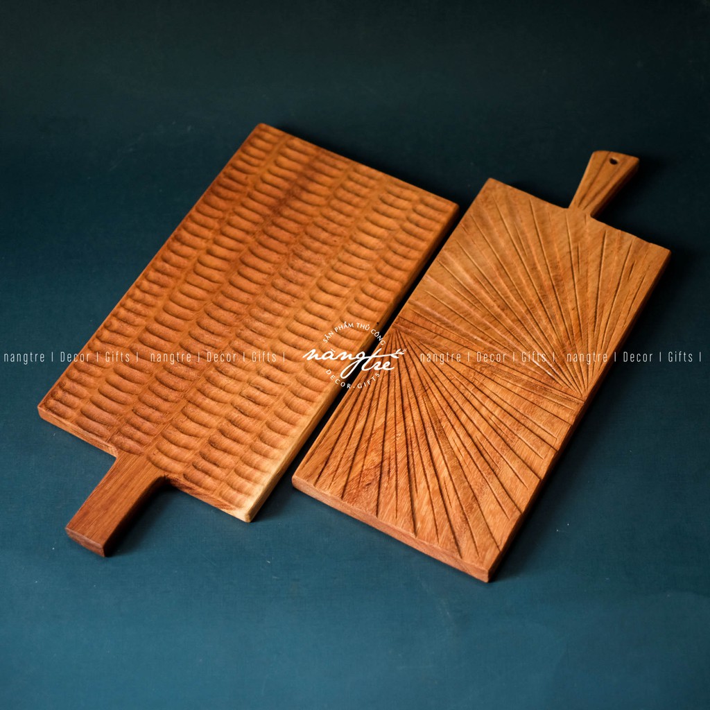 Thớt gỗ đỏ tay cầm/ Thớt gỗ chạm khắc thủ công- Được sản xuất từ gỗ đỏ chất lượng, nguyên khối, có vân gỗ tự nhiên, chạm khắc độc đáo, phủ dầu oliu.