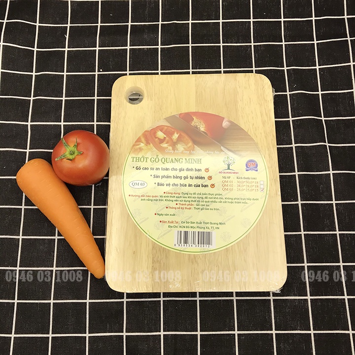 - Thớt chữ nhật (Dài - Rộng - Độ dày): QM01 35 - 25 - 1.8cm