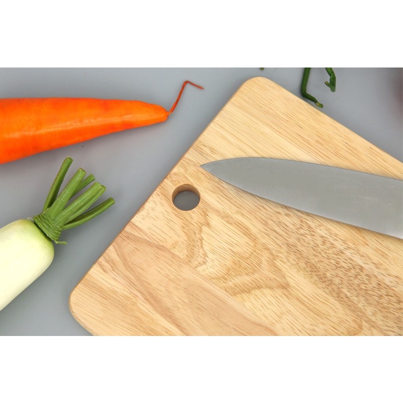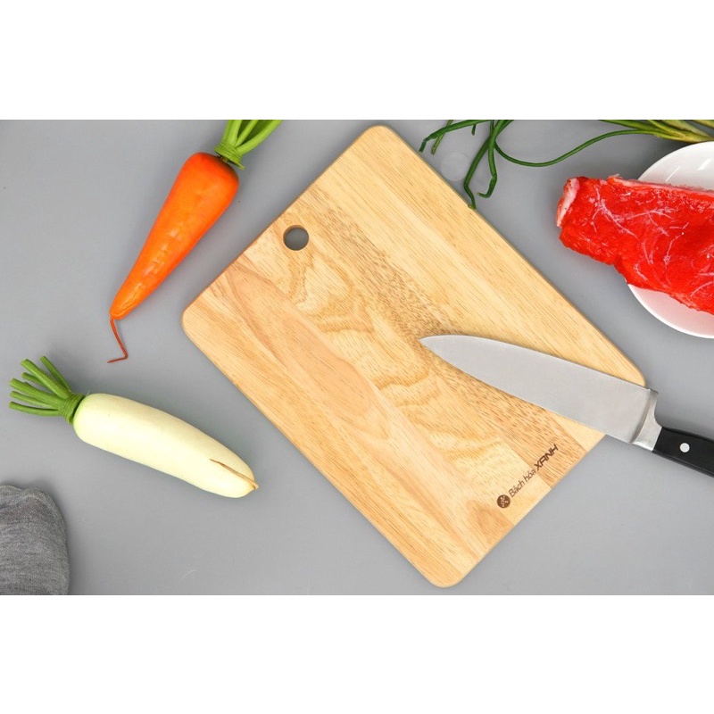 - Thớt làm bằng chất liệu gỗ cao su