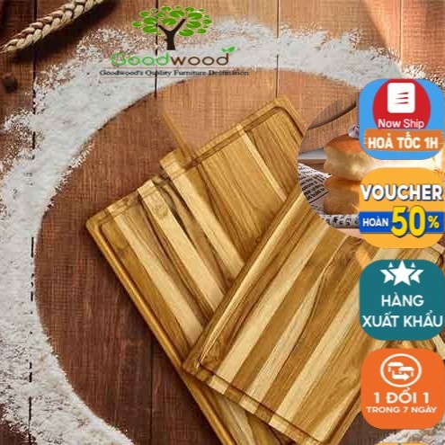 Thớt gỗ Teak cao cấp siêu cứng không mùn, chống nứt, có rãnh -Thớt gỗ kháng khuẩn hàng xuất khẩu Châu Âu