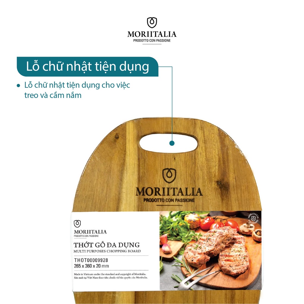 Thớt Gỗ Moriitalia Bền Đẹp Đa Dụng Kháng Khuẩn Cao THOT00009928Moriitalia là hệ thống các cửa hàng sang trọng, đẳng cấp, cung cấp đa dạng các sản phẩm từ thời trang, phụ kiện, túi xách, đồng hồ, quà tăng cho đến trang trí nội thất, đồ gia dụng nhà cửa đời sống, sản phẩm cho du lịch, dã ngoại… Tất cả đều đến từ các thương hiệu nổi tiếng hàng đầu thế giới.