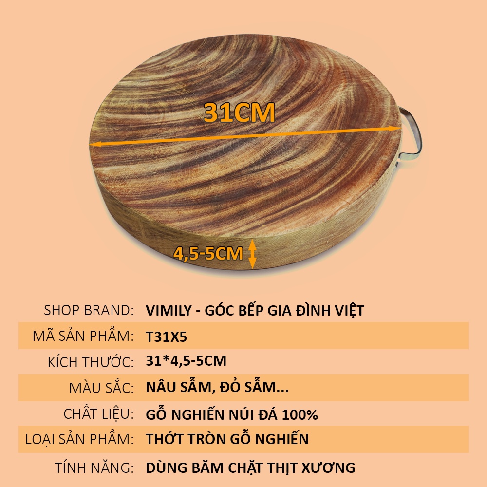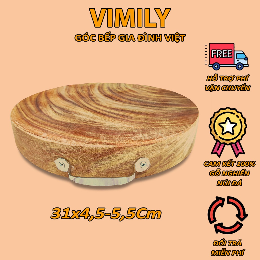 Thớt gỗ nghiến núi đá Tây Bắc tròn không tâm băm chặt thịt xương cao cấp siêu bền VIMILY kích thước 31x5cmChúng tôi cam kết sản phẩm của VIMILY - PHÁT HIỆN KHÔNG ĐÚNG GỖ NGHIẾN ĐỀN BÙ GẤP 10 LẦN