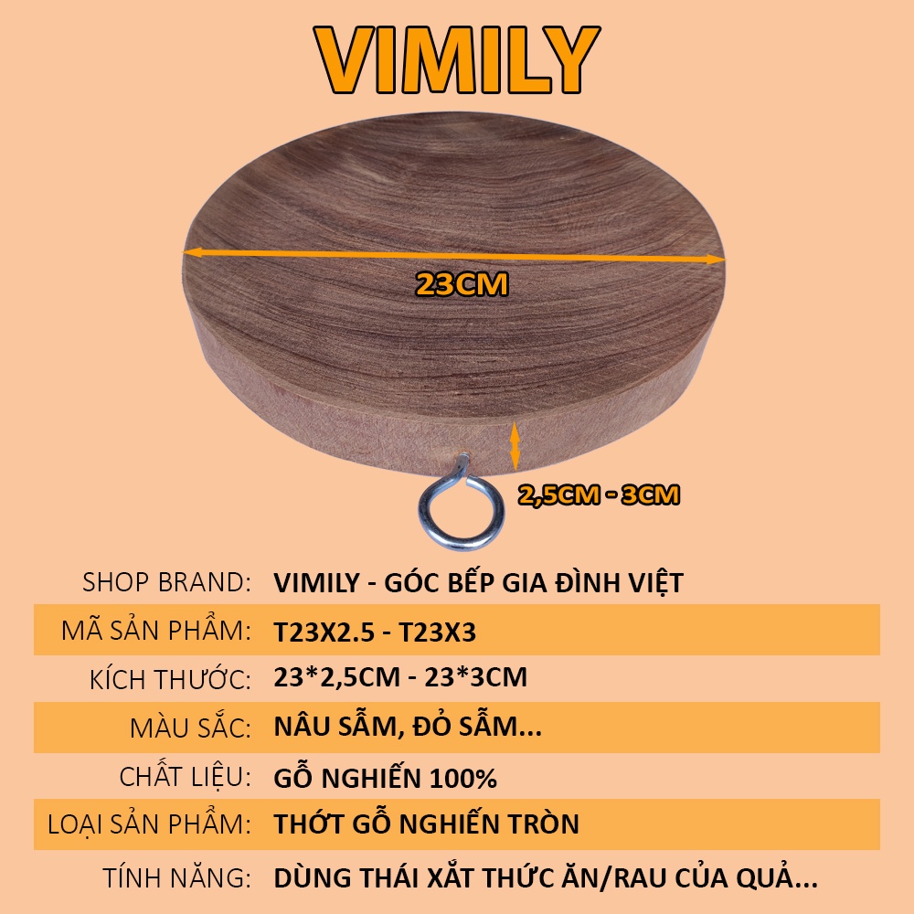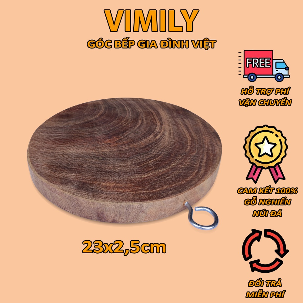 Nhà cửa & Đời sống > Dụng cụ nhà bếp > Thớt || Thớt gỗ nghiến Tây Bắc núi đá tròn không tâm cắt thái xắt cao cấp VIMILY siêu bền kích thước 23x3cmCòn hàng