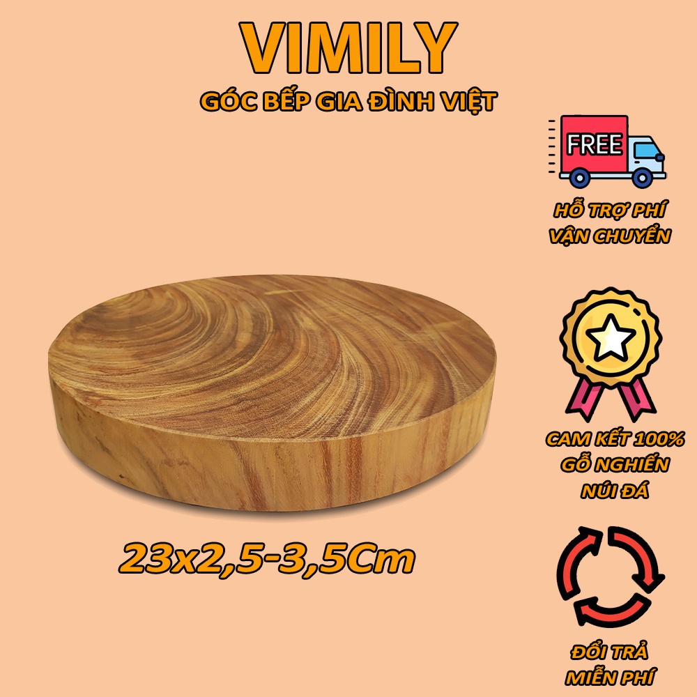 Thớt gỗ nghiến Tây Bắc núi đá Tây Bắc tròn không tâm cắt thái xắt cao cấp VIMILY siêu bền kích thước 23x3cmChúng tôi cam kết sản phẩm của VIMILY - PHÁT HIỆN KHÔNG ĐÚNG GỖ NGHIẾN ĐỀN BÙ GẤP 10 LẦN