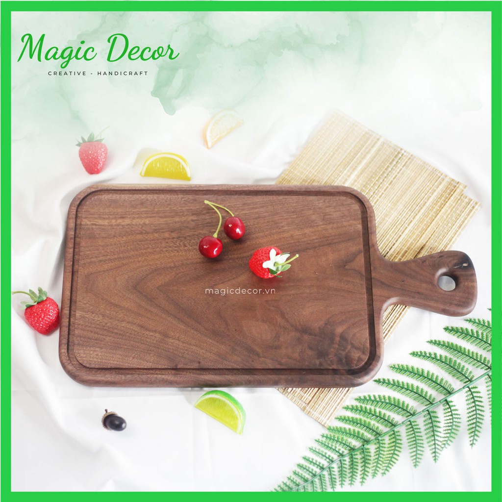 Thớt gỗ Óc Chó trang trí decor thiết kế có tay cầm - nguyên khối, không sơn hóa học, bày đồ ăn cực đẹp