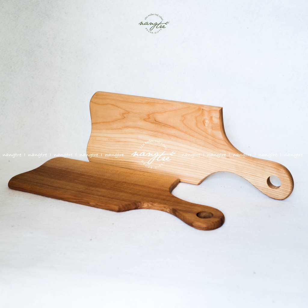 Thớt gỗ tay nắm lệch bo tròn - đựng thức ăn - trang trí