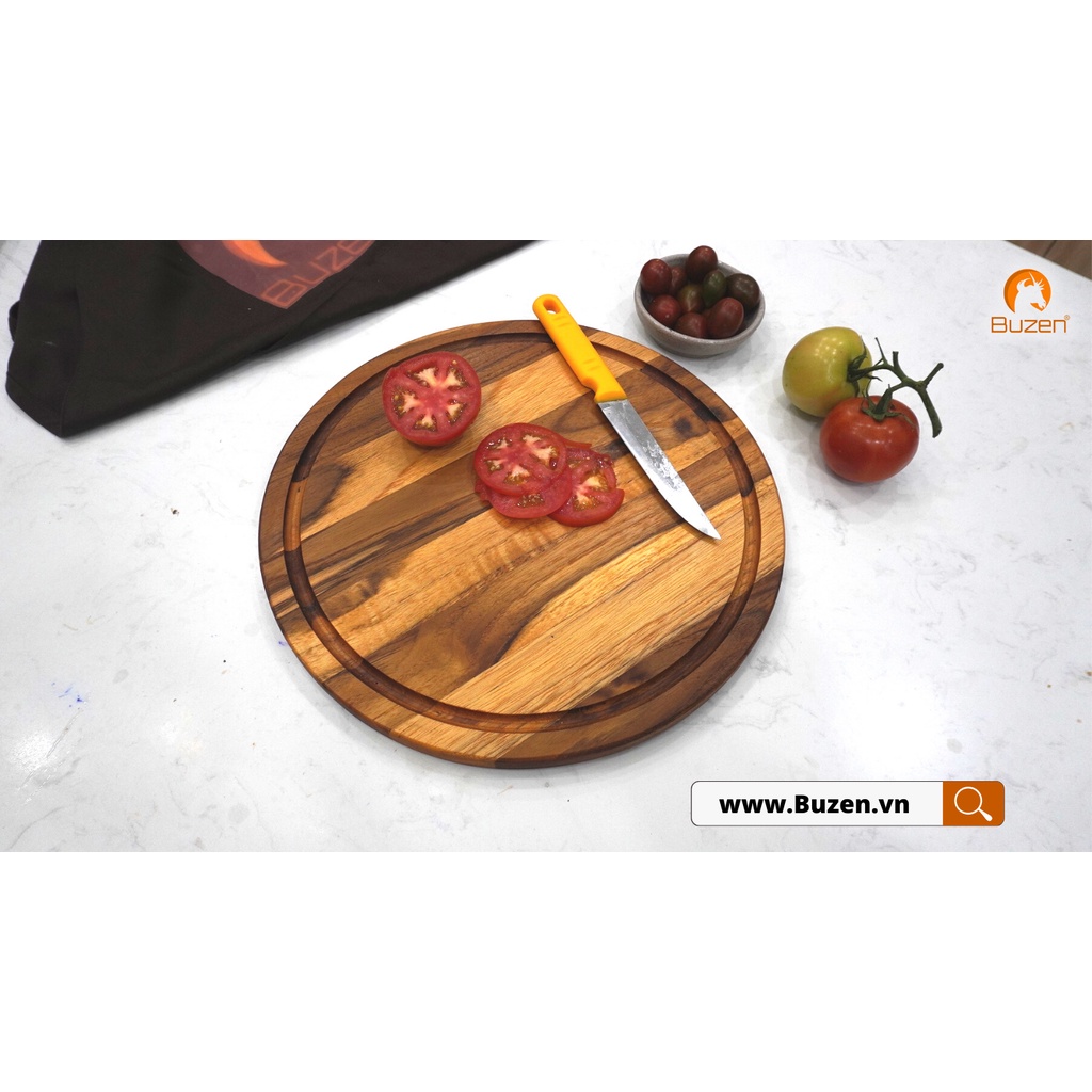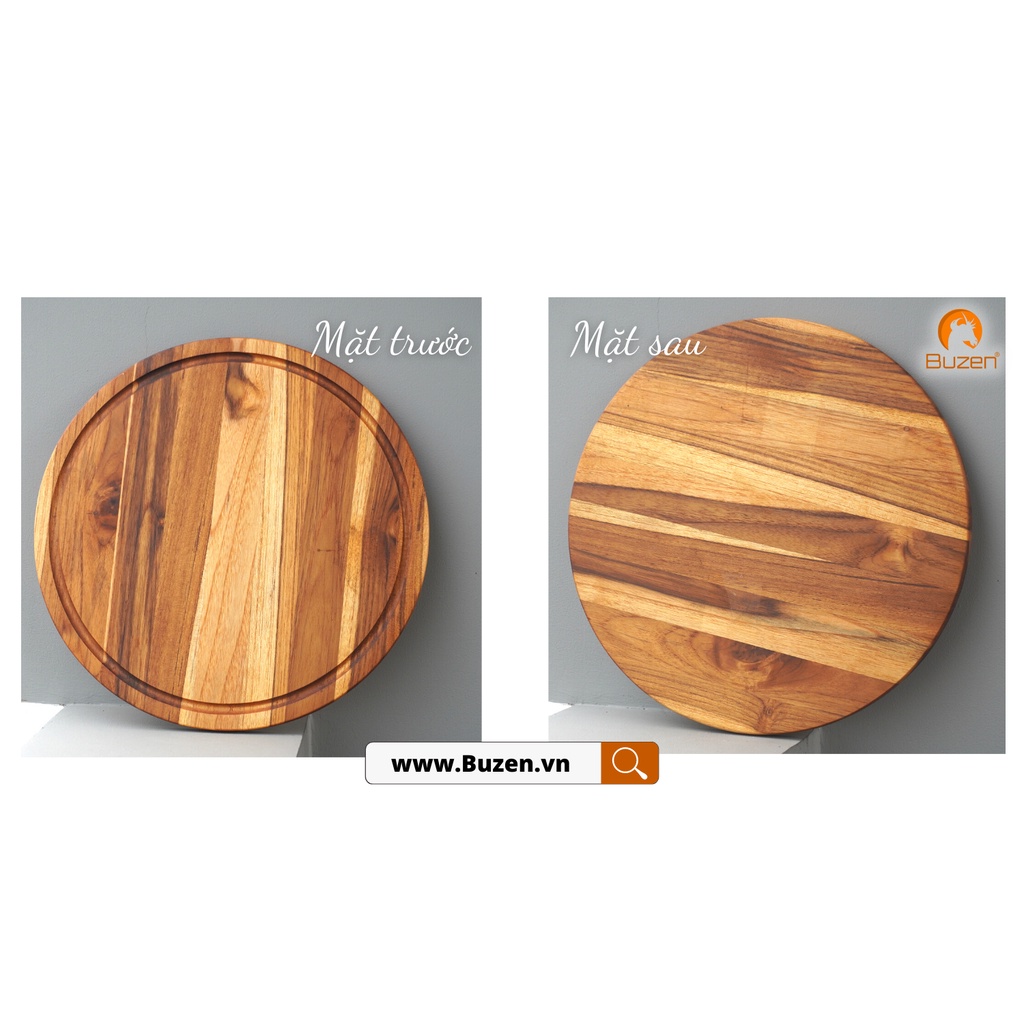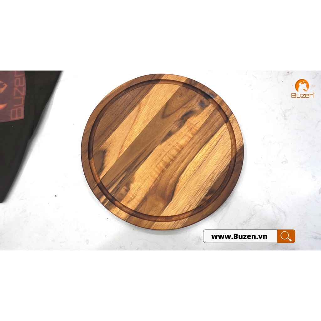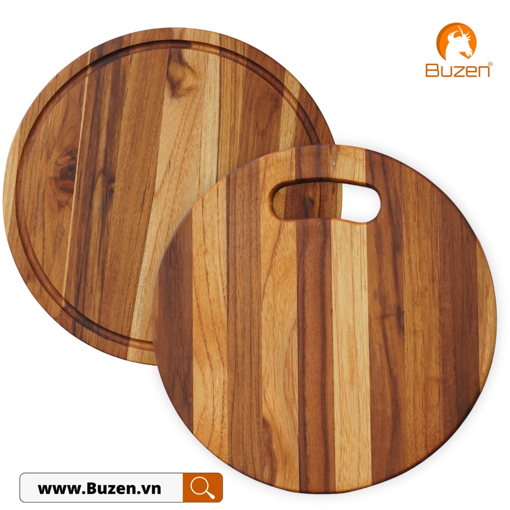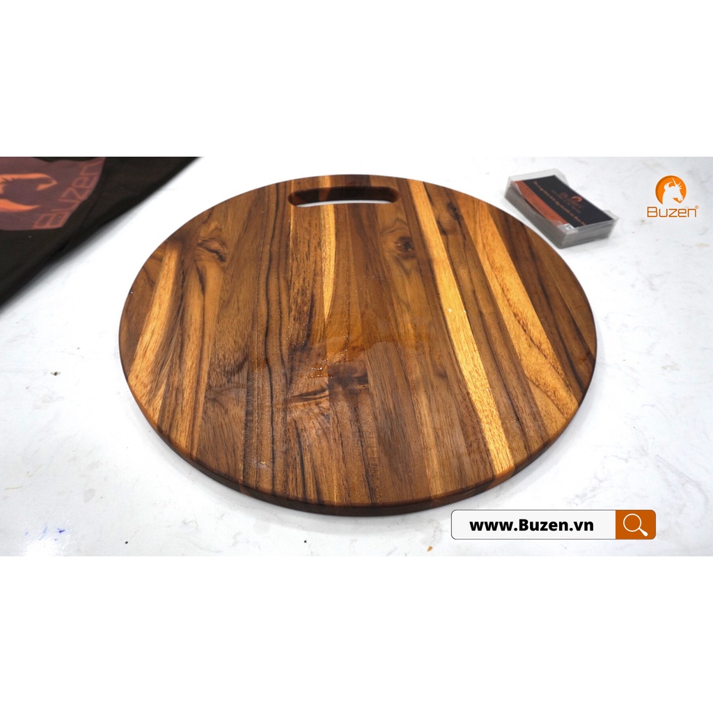 Nhà cửa & Đời sống > Dụng cụ nhà bếp > Thớt || Thớt Gỗ Teak BUZEN Cao Cấp - Mẫu Tròn ghép ngang dùng để Cắt tháiCòn hàng