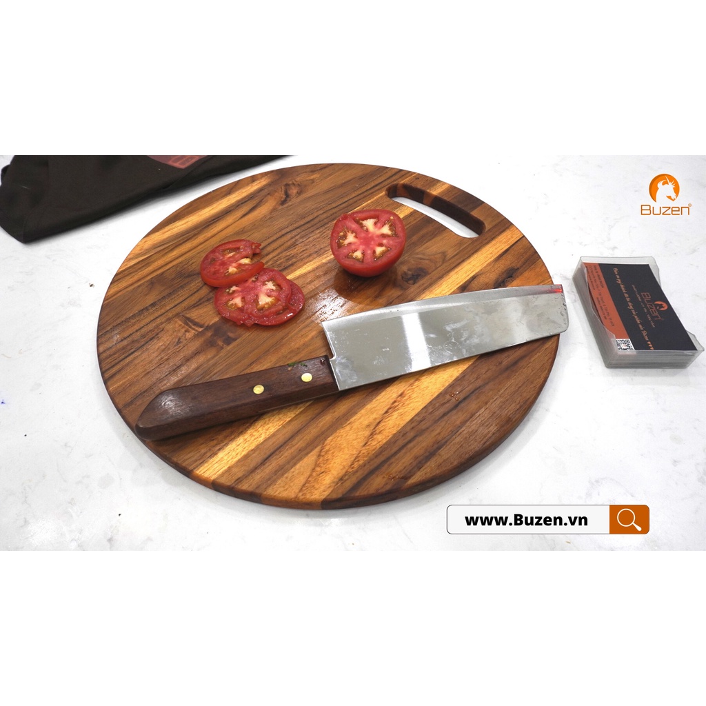 Giới thiệu Thớt Gỗ Teak BUZEN Cao Cấp - Mẫu Tròn ghép ngang dùng để Cắt thái