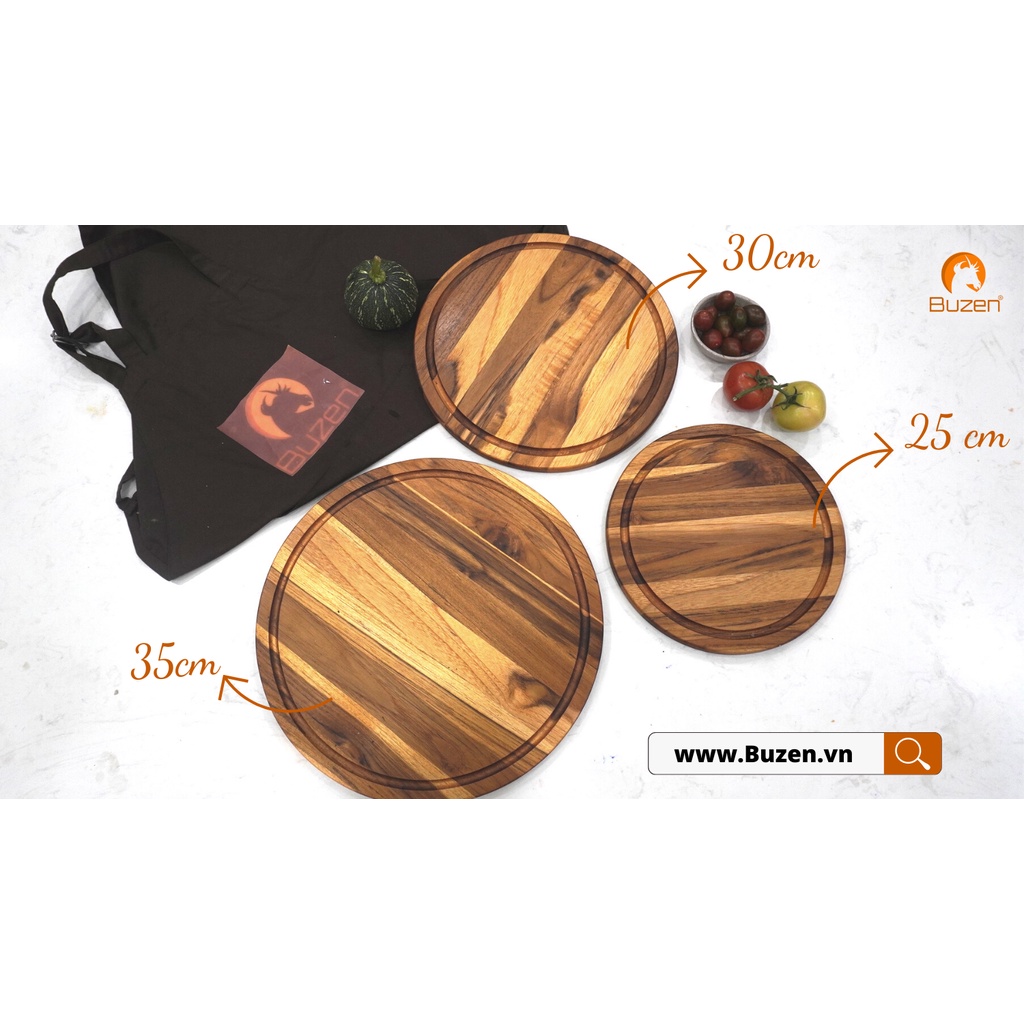 Thớt Gỗ Teak BUZEN Cao Cấp - Mẫu Tròn ghép ngang dùng để Cắt thái
