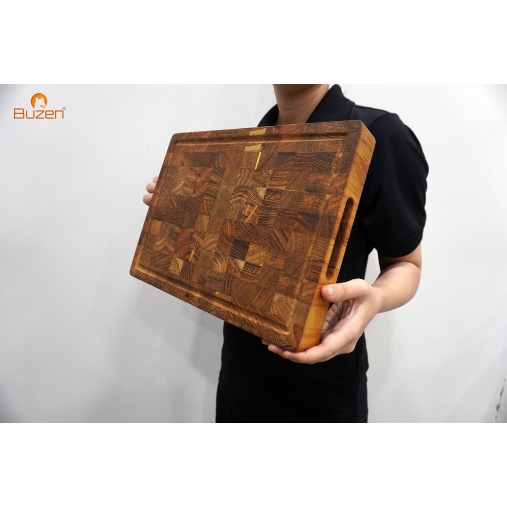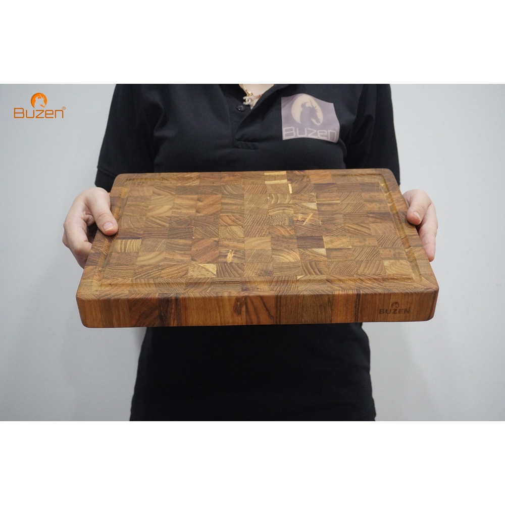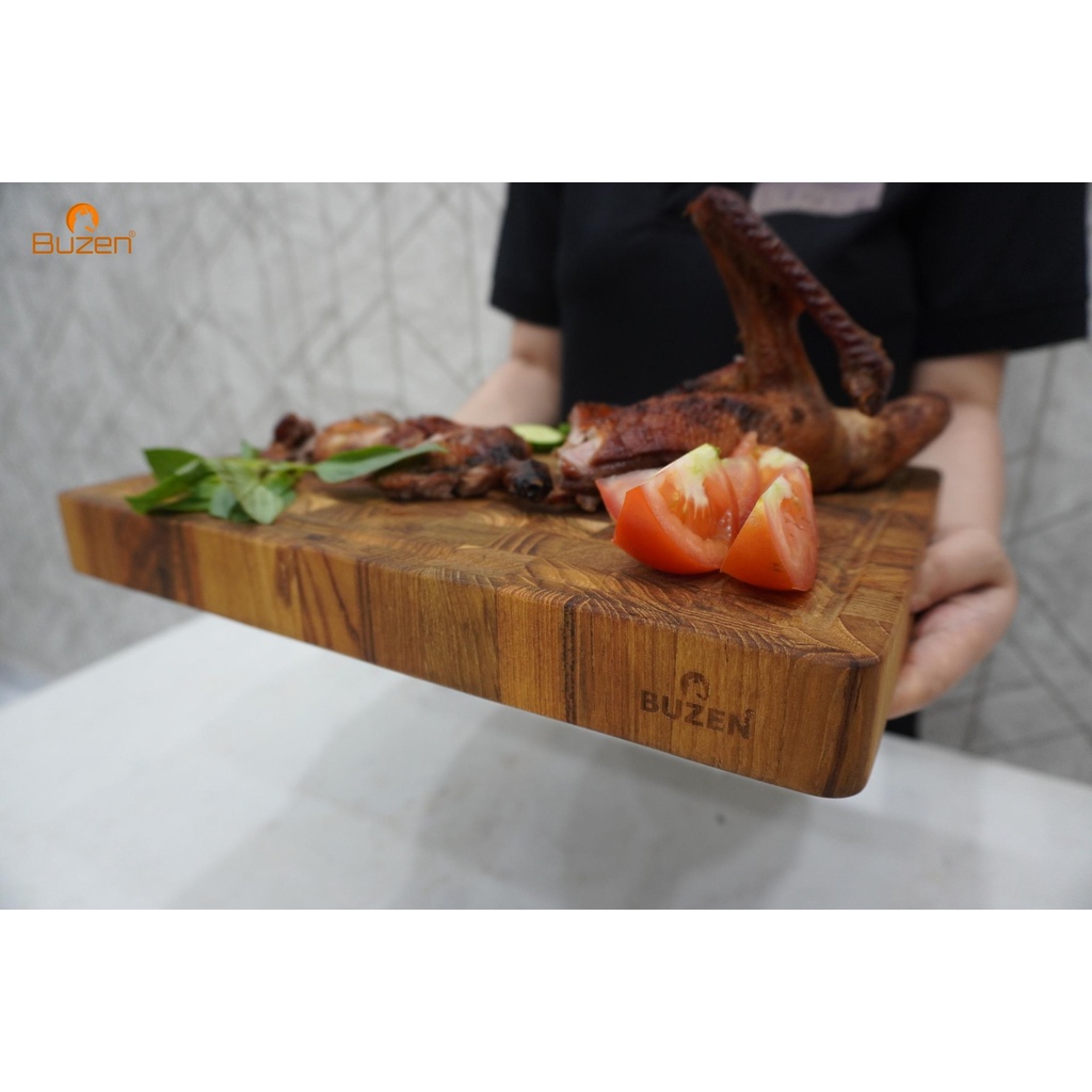Giới thiệu Thớt Gỗ Teak BUZEN Chữ Nhật Cỡ Trung 35x25x3.8cm - Thớt Gỗ Teak Cứng Không Sợ Mùn Không Mối Mọt Cong Vênh