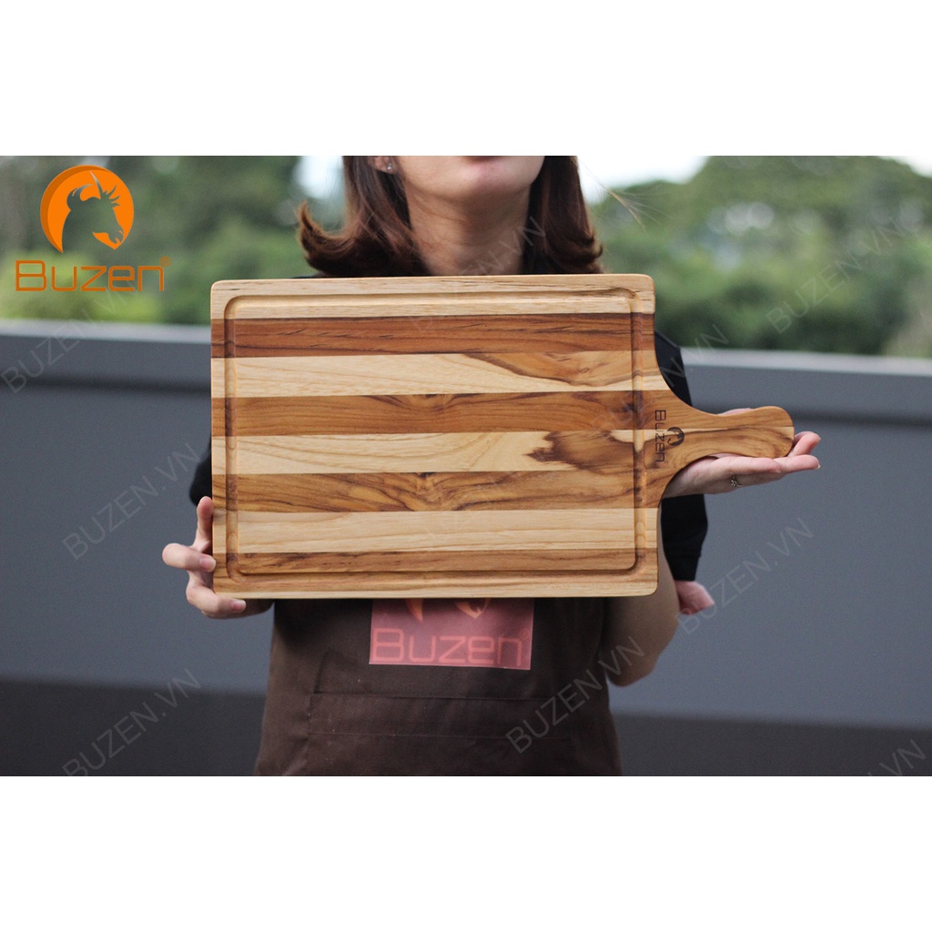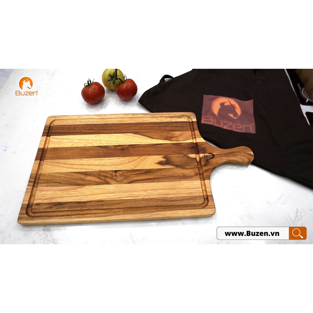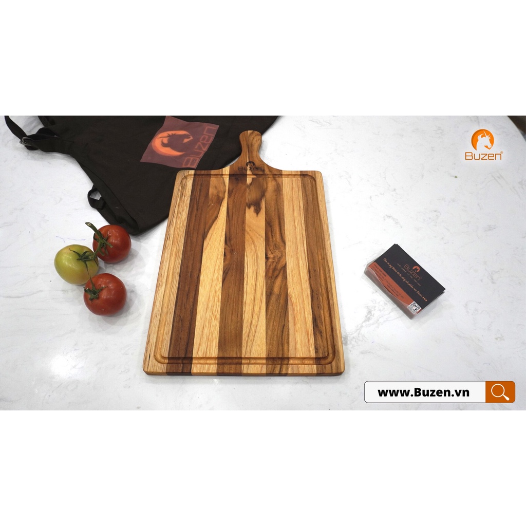 Nhà cửa & Đời sống > Dụng cụ nhà bếp > Thớt || Thớt gỗ Teak BUZEN Chữ nhật Tay Cầm Có Rãnh - Thớt gỗ trang tríCòn hàng