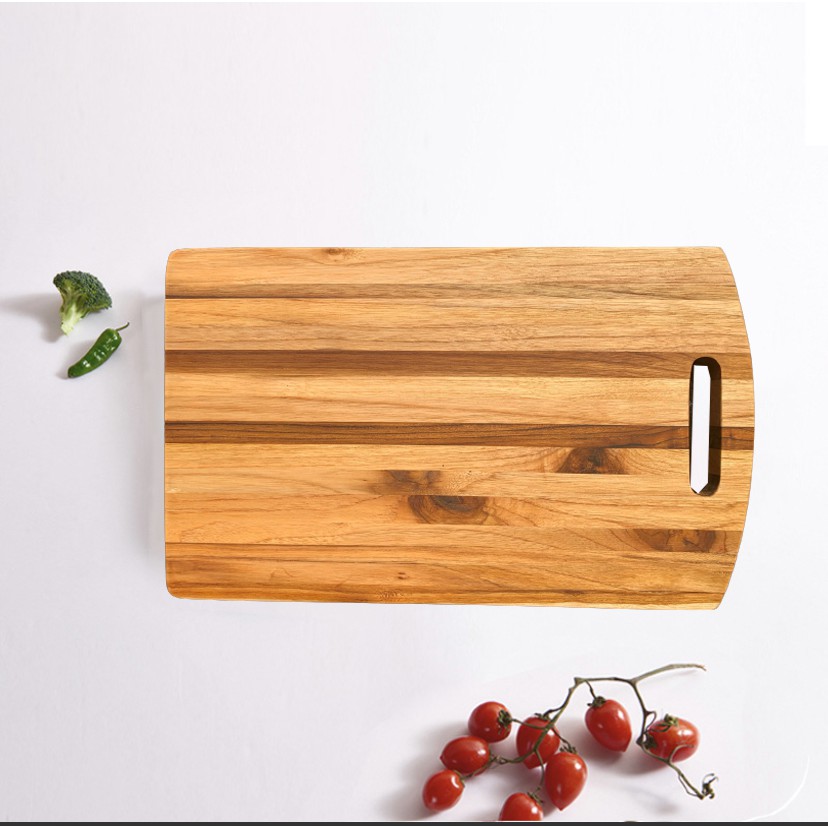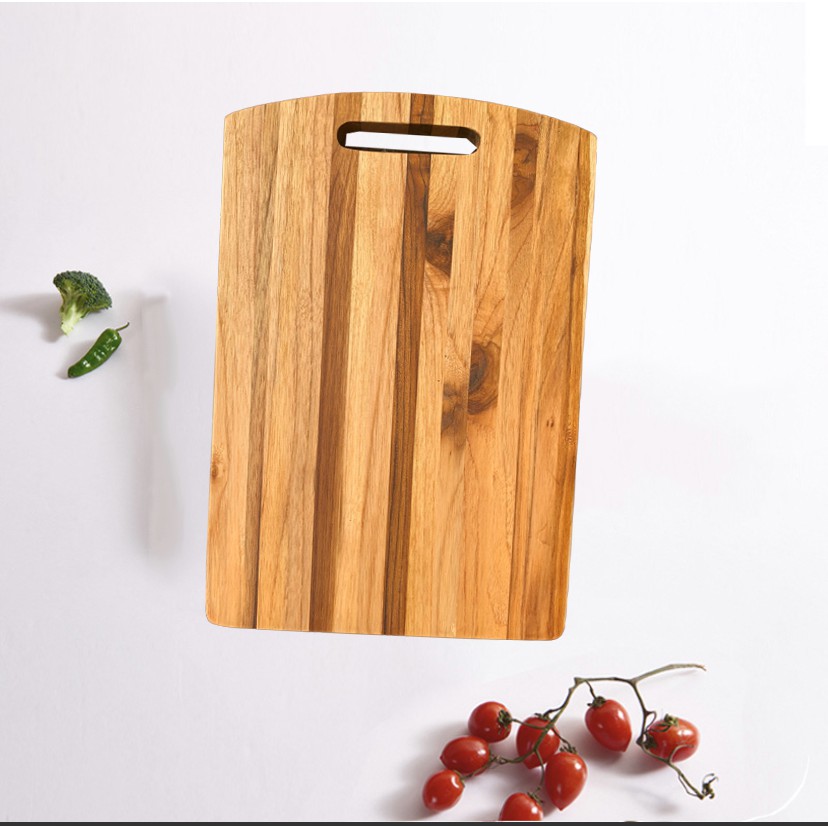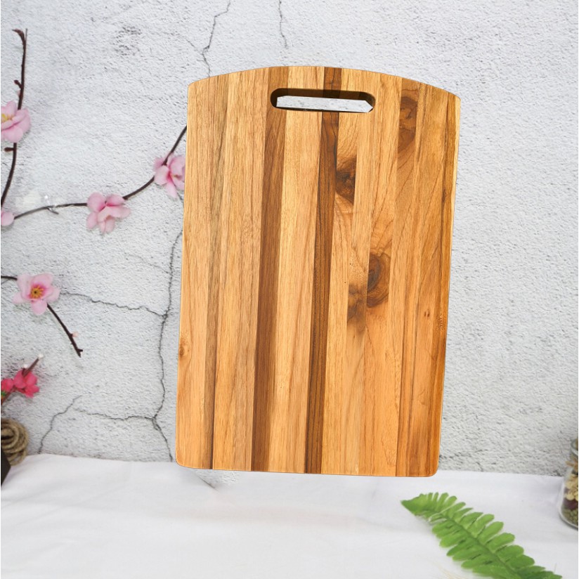 Thớt gỗ Teak Xuất Khẩu Châu Âu 420x260x18 mm- Thớt Gỗ Cắt Thái Chặt Hoặc Trang Trí Decor Kháng Khuẩn Không Mùn