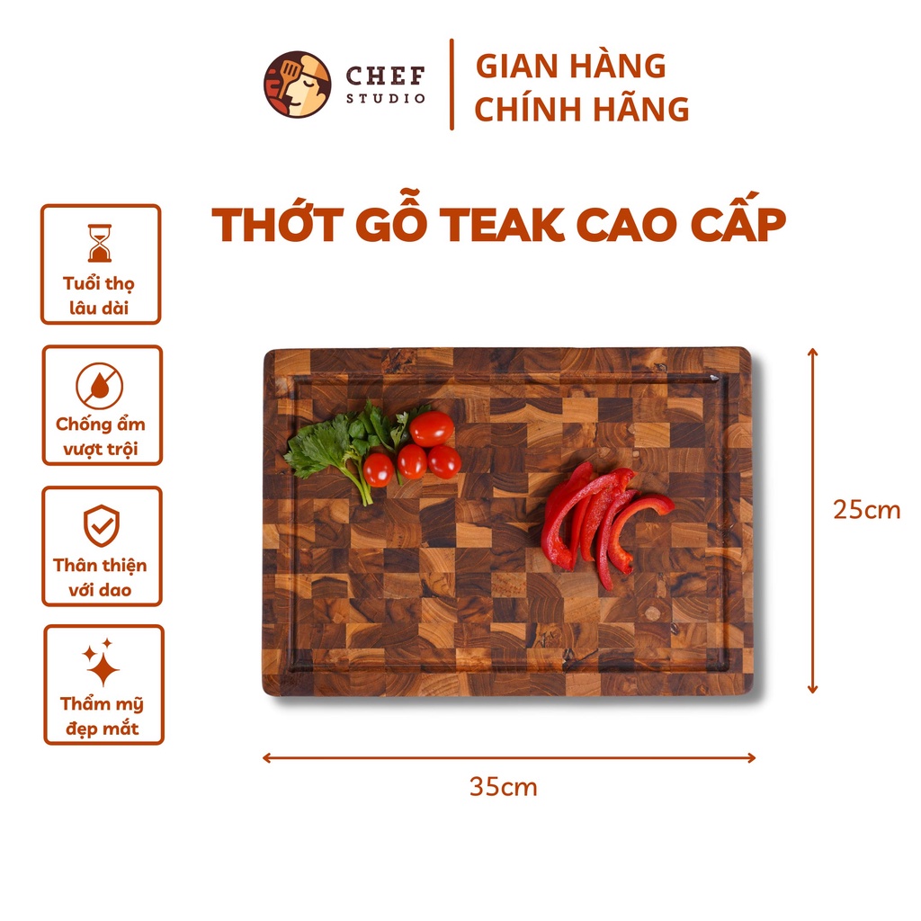 Nhà cửa & Đời sống > Dụng cụ nhà bếp > Thớt || Thớt gỗ Teak Chef Studio cao cấp hình chữ nhật, đa dụng, an toàn cho sức khỏeCòn hàng
