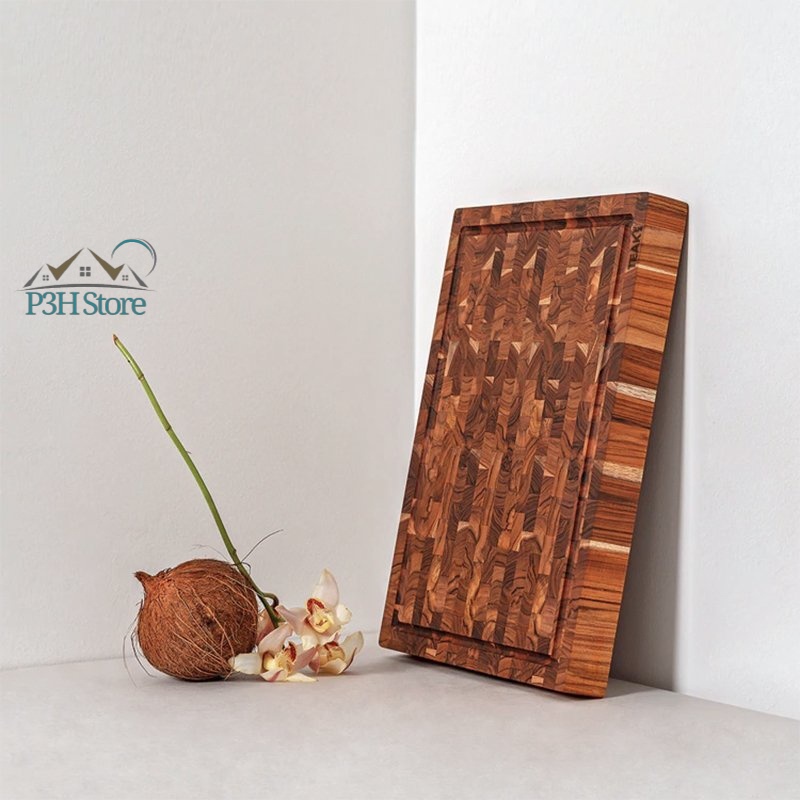 - Thớt gỗ Teak có kiểu dáng và màu gỗ đặc trưng, mang lại sự sang trọng, hiện đại cho căn bếp.