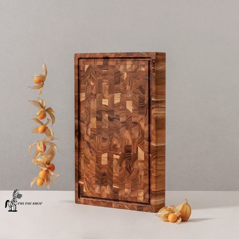 - Thớt gỗ Teak có kiểu dáng và màu gỗ đặc trưng, mang lại sự sang trọng, hiện đại cho căn bếp.