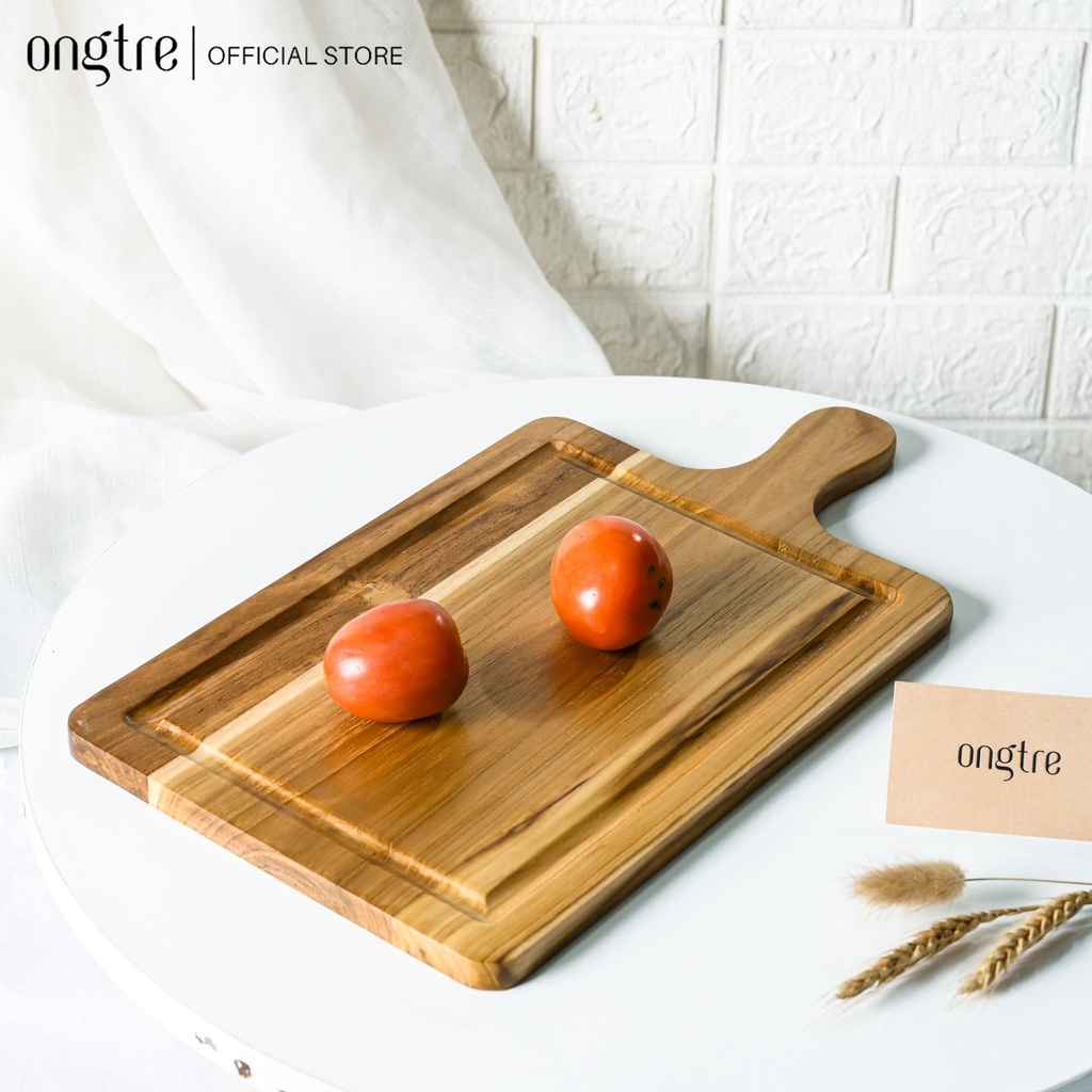 Nhà cửa & Đời sống > Dụng cụ nhà bếp > Thớt || Thớt gỗ Teak ONGTRE cao cấp hình chữ nhật, tròn tay cầm chống mùn, mốc an toàn, thân thiện với môi trườngCòn hàng