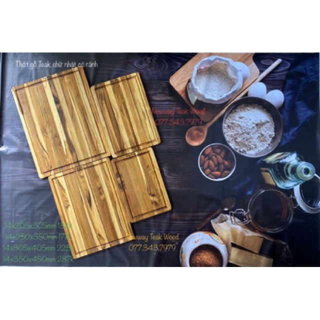 Nhà cửa & Đời sống > Dụng cụ nhà bếp > Thớt || Thớt gỗ trang trí đồ ăn kiểu dáng Vintage decor kích thước 458 x 365 x 32 mm - Thớt Gỗ Teak Chữ Nhật Có Rãnh Cao CấpCòn hàng