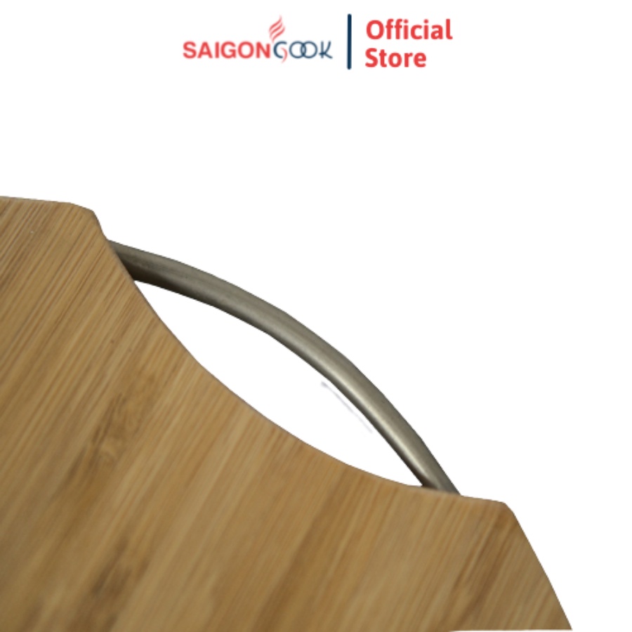 Thớt gỗ tre hình tròn tay cầm inox an toàn, kháng khuẩn Saigoncook