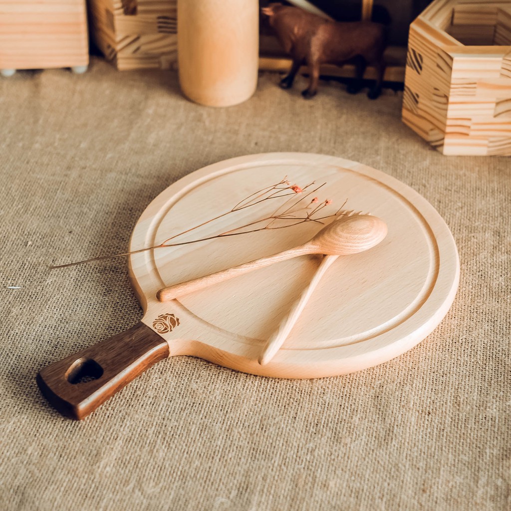 Thớt gỗ tròn có tay cầm - Làm bếp - Phụ kiện trang trí