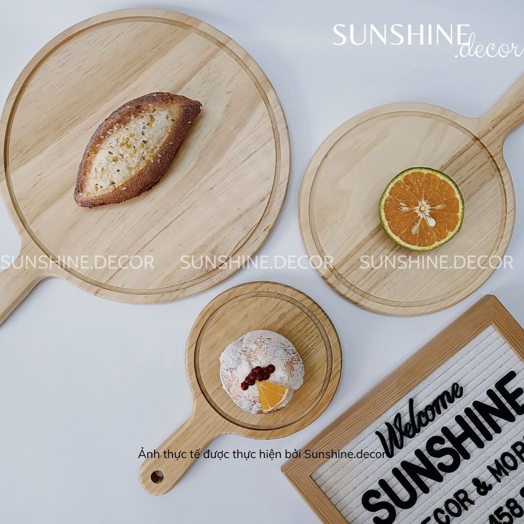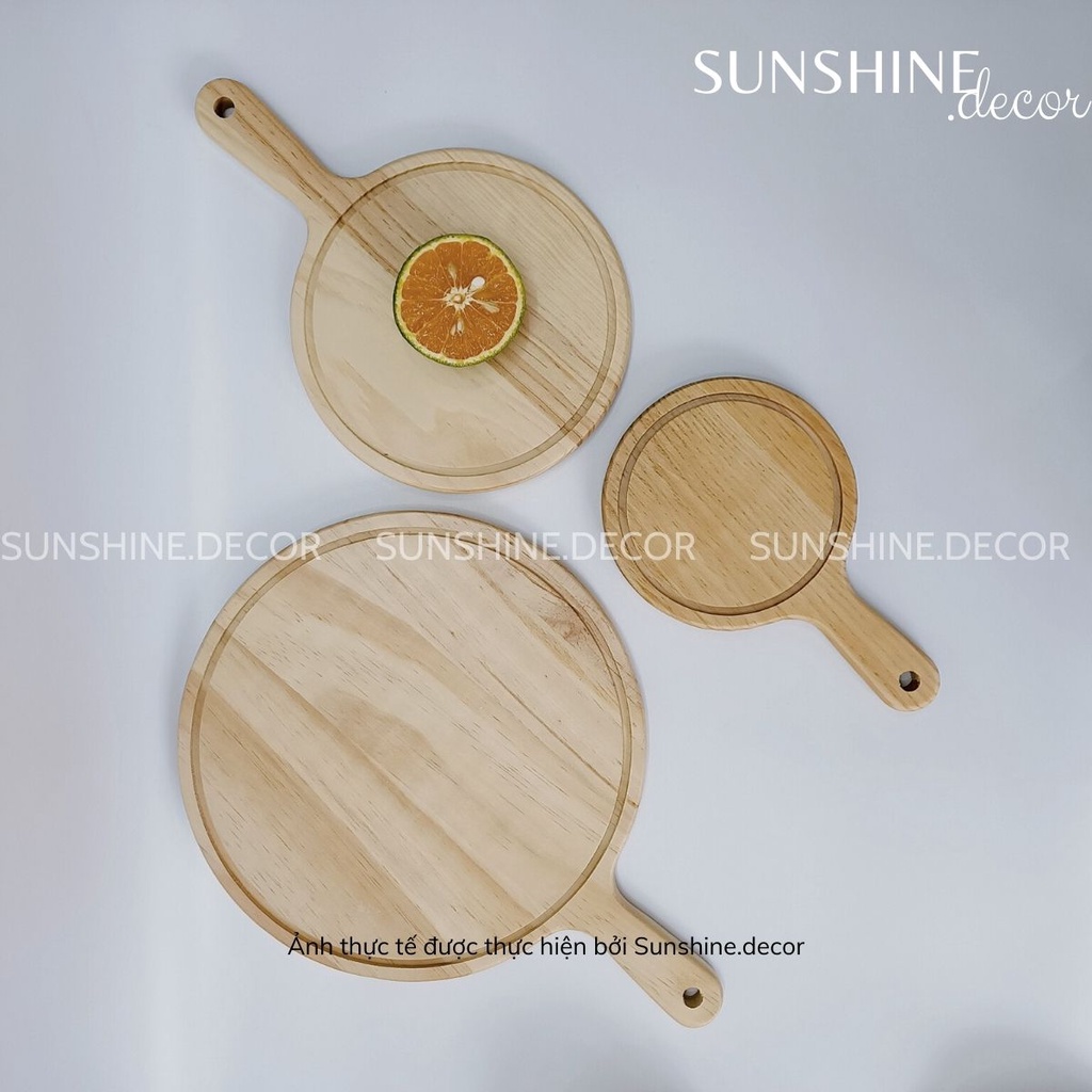 Nhà cửa & Đời sống > Dụng cụ nhà bếp > Thớt || Thớt gỗ tròn khay pizza có tay cầm đựng đồ ăn chụp ảnh decorCòn hàng
