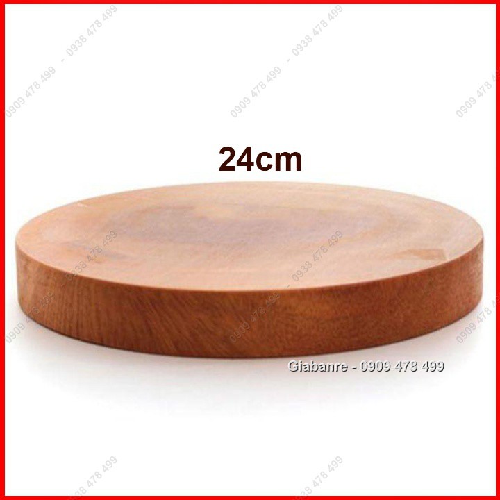 - Kích thước : thớt gỗ tròn : đường kính 24 cm, dày 3 cm