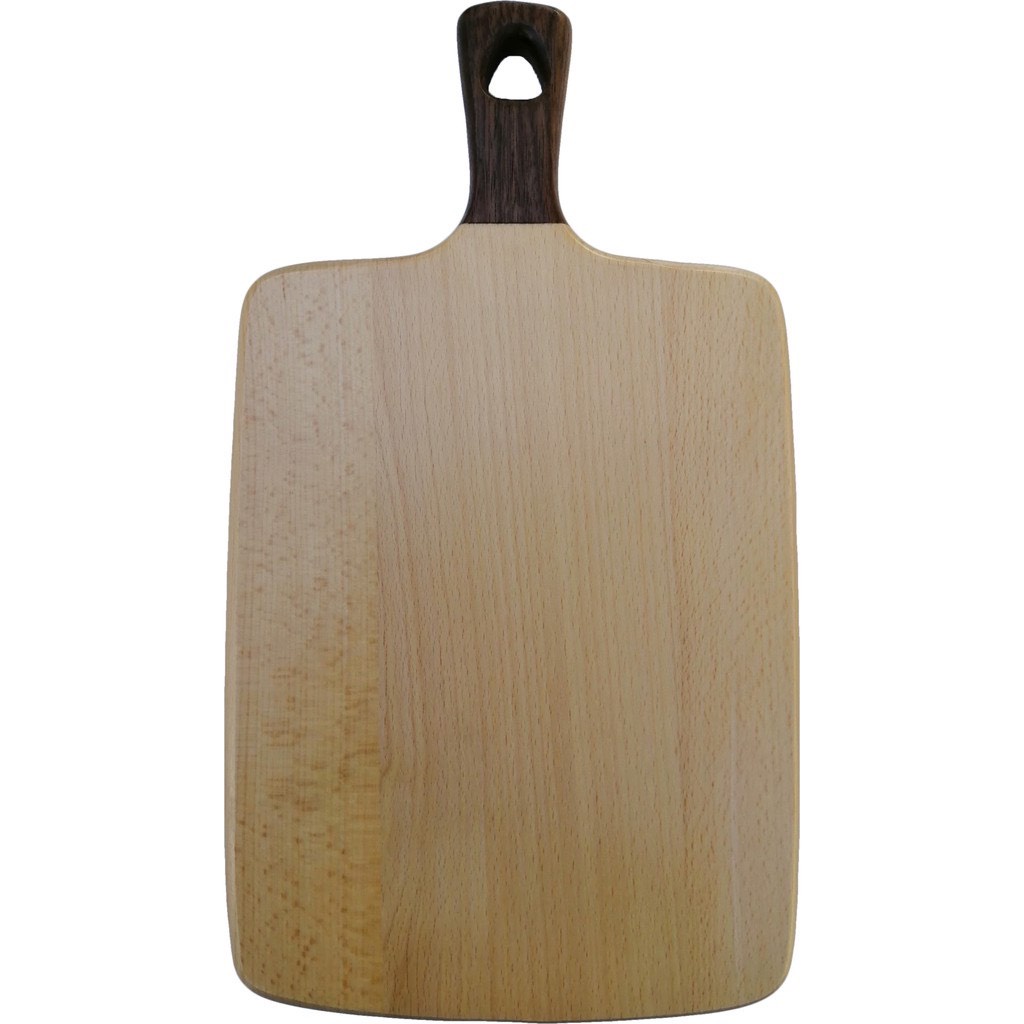 Thớt gỗ Tay Cầm Chữ Nhật CN395 được làm nhãn mịn hai mặt với thành phần chính của thớt là gỗ Beech, tay cầm gỗ Walnut.