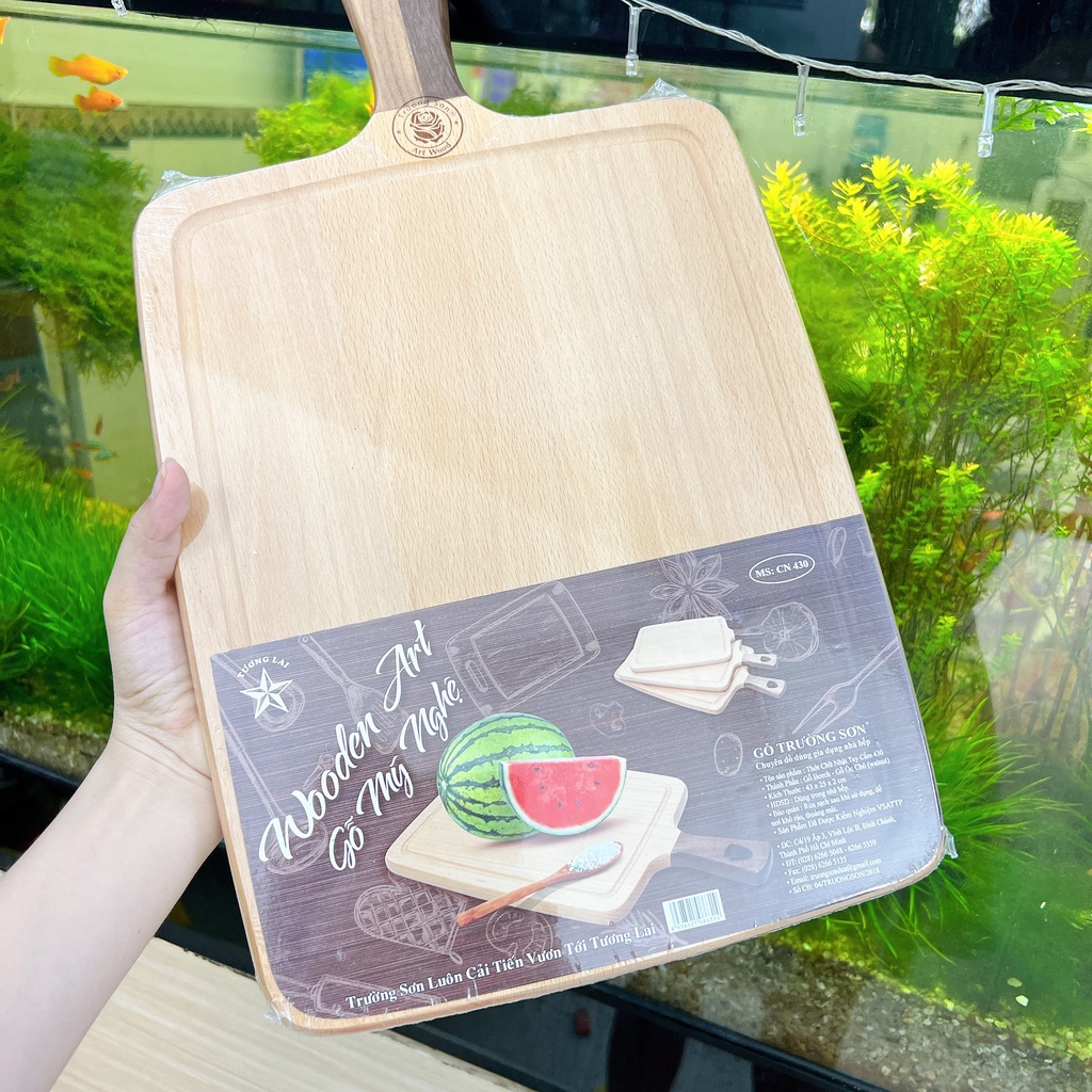 Nhà cửa & Đời sống > Dụng cụ nhà bếp > Thớt || Thớt Gỗ Tự Nhiên Chữ Nhật Có Tay Cầm Trường Sơn Cao Cấp CN430Còn hàng