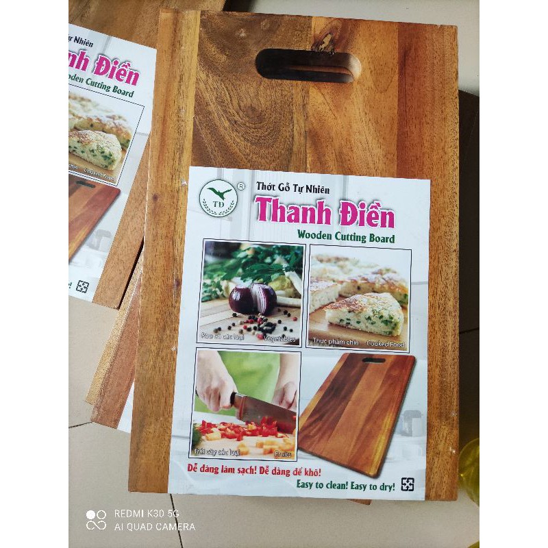 - Thớt bằng gỗ siêu bền với kích thước vừa phải, thuận tiện cho việc xắt rau, củ, thịt, cá… một cách gọn gàng, nhanh chóng.