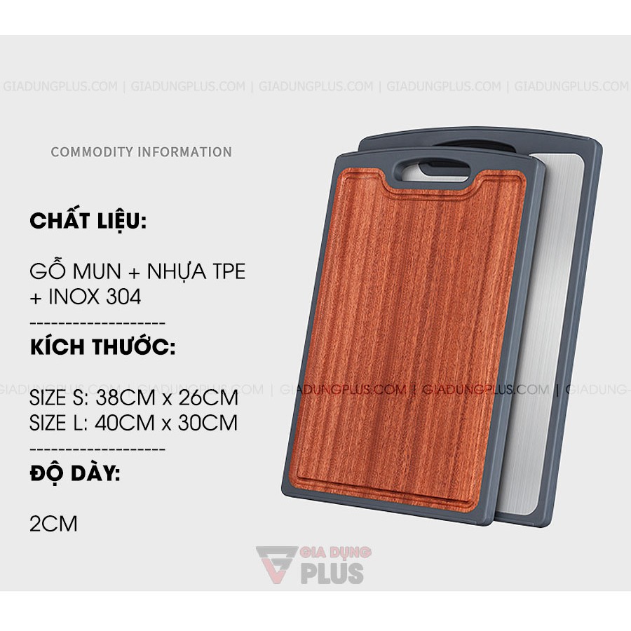 Nhà cửa & Đời sống > Dụng cụ nhà bếp > Thớt || Thớt hai mặt gỗ mun nguyên tấm (nhập khẩu Congo) & INOX 304 cao cấp - JIANXIACòn hàng