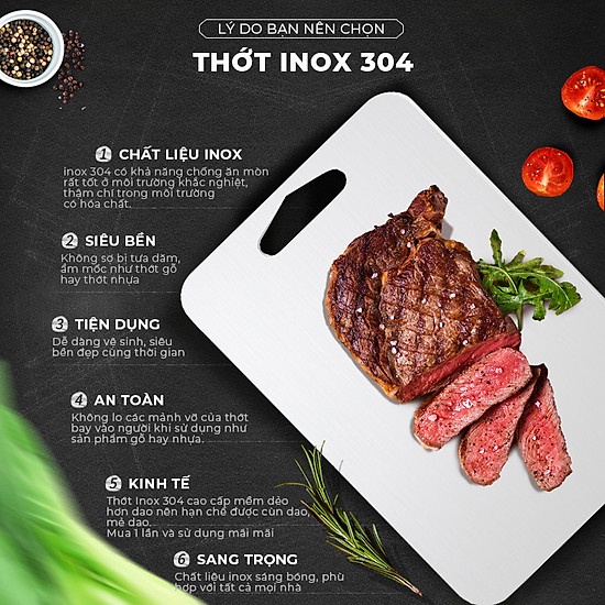 Thớt inox 304 cao cấp 2 mặt kháng khuẩn chống ẩm mốc hoen gỉKhông sợ độc hại, xước dăm như thớt gỗ thớt nhựa Kháng khuẩn, an toàn vệ sinh